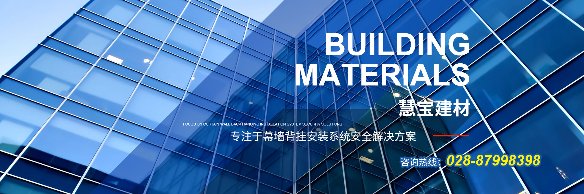 成都慧寶建材有限公司,成立于2008年,是一家集建筑幕墻研發(fā)、加工銷售、干掛安裝為一體的企業(yè)。公司秉承“一起創(chuàng)造,共同分享”的 企業(yè)理念,專注于幕墻背掛安裝系統(tǒng)安全解決方案。 公司擁有專業(yè)的工程技術、銷售及售后服務團隊,為客戶提供技術培訓和技術咨詢。公司以市場為導向,質(zhì)量標準為原則,客戶滿意為宗旨,本著“誠信和諧、合作共贏”的經(jīng)營理念,繼續(xù)貫徹“創(chuàng)新進取、追求卓越”的經(jīng)營方針,為客戶提供更加優(yōu)良的服務! 查看更多
